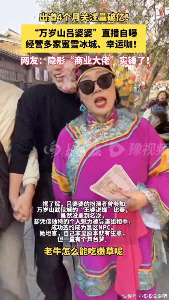 皇冠体育投注据了解,吕婆婆的饰演者曾插足万岁山的“王婆说媒”比赛,固然没拿到排名,却凭借专有的个东谈主魔力被导演组相中,见效签约成为景区NPC。